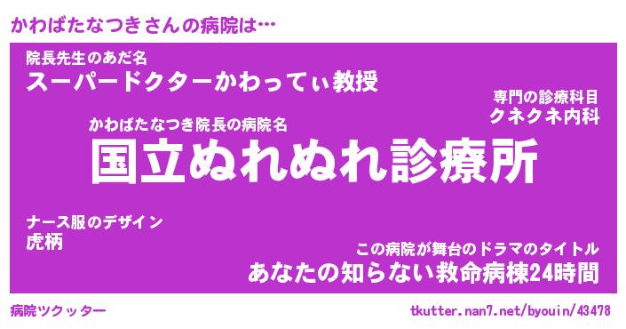 | 伝説のあだ名 | 『伝説のスナイパーかわばたなつき』 |
