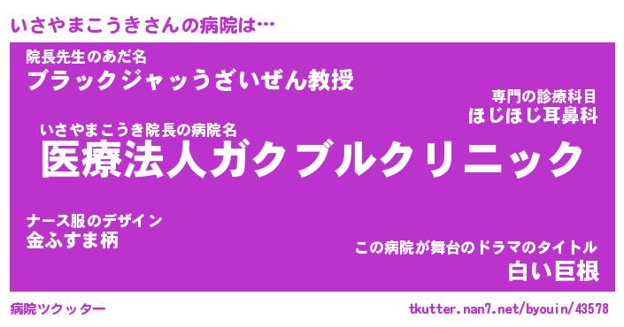 | ヘコむあだ名 | 『いさにゅー』『なまこ酢』 |