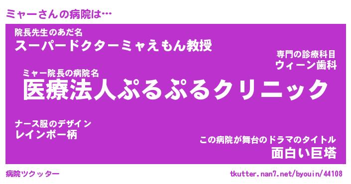 | ヘコむあだ名 | 『ミャにゅー』『牛乳』『ミャっちょ』 |