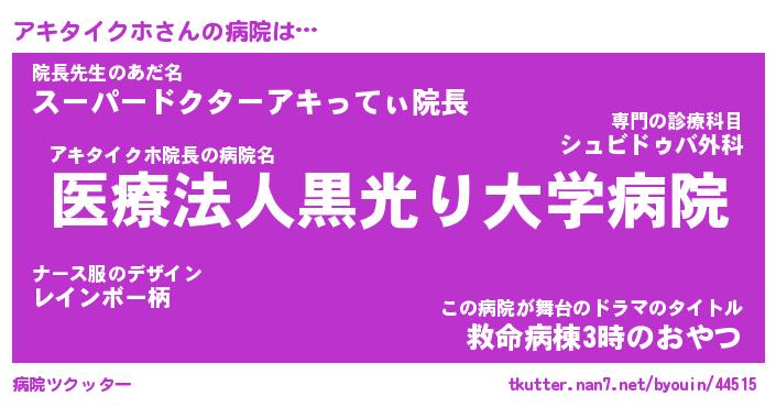| ヒーロー風カッコイイあだ名 | 『スーパーアキタイクホ』『暗黒騎士アキ』 |
