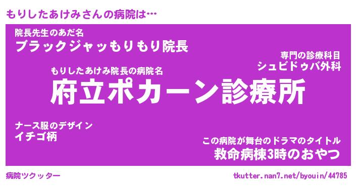 | 恥ずかしいあだ名 | 『プリティーもりしたあけみ』『もりちん』 |