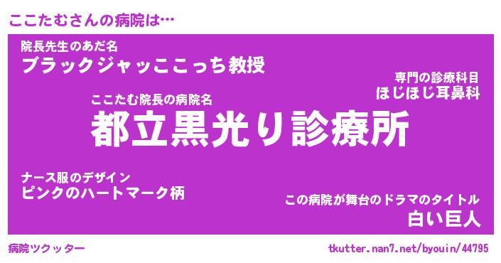 | 意味不明あだ名 | 『ペロリンここたむ』『永久保存ここたむ』 |