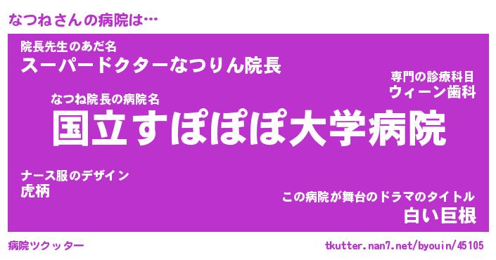 | ヒーロー風カッコイイあだ名 | 『スーパーナツネ』『ウルトラなつねマン』 |