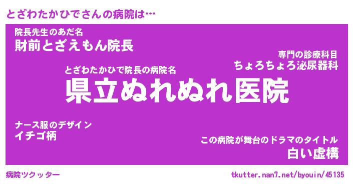 | 男性向けラノベタイトル風あだ名 | 『とざわたかひでの憂鬱』 |