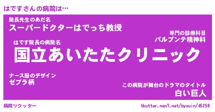 | 男性向けラノベタイトル風あだ名 | 『はですの憂鬱』 |