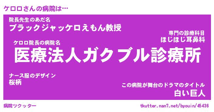| 欧米人風あだ名 | 『マイケルケロロ』『ケロロクリステル』 |
