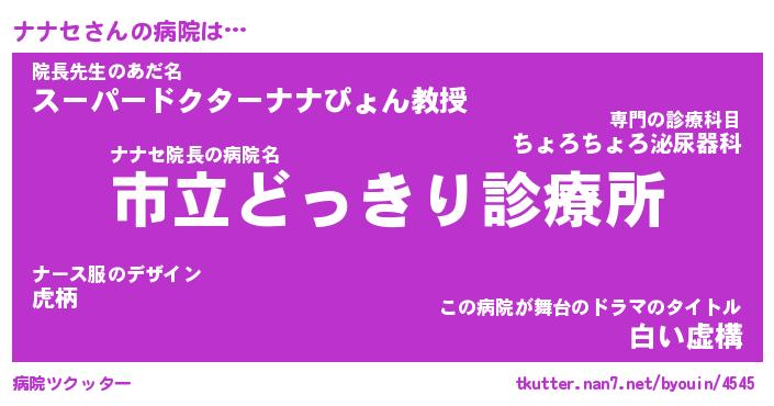 | ヒーロー風カッコイイあだ名 | 『スーパーナナセ』『ウルトラナナセマン』 |