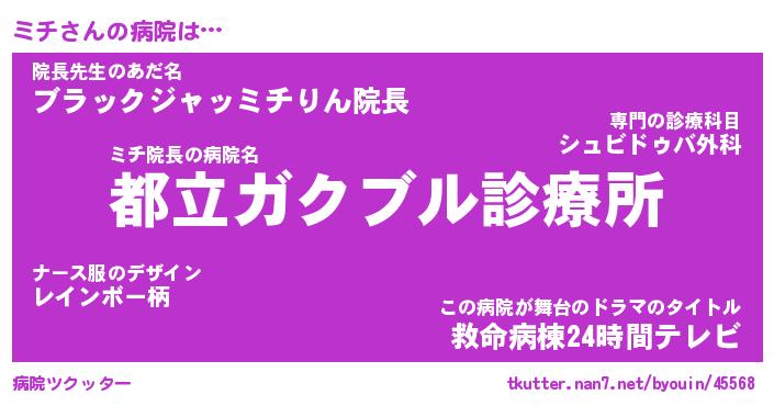 | ピコ太郎風あだ名 | 『ミコ史郎』『ピミ五郎』『ミチ八郎』 |