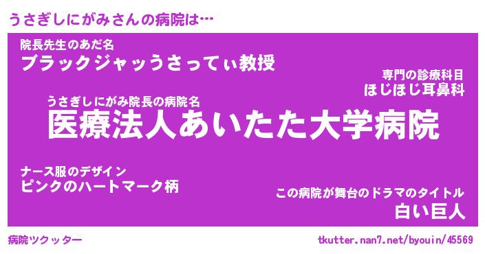 | 2回繰り返すあだ名 | 『うさうさ』『ううささ』『にたにた』 |