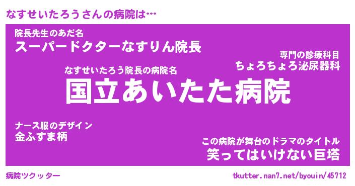 | 伝説のあだ名 | 『伝説のスナイパーなすせいたろう』 |