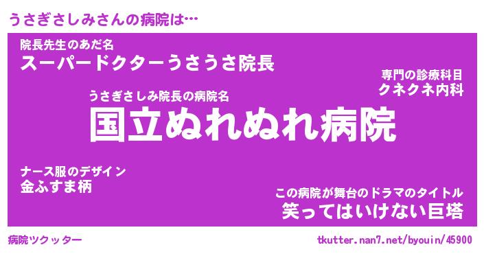 | 男性向けラノベタイトル風あだ名 | 『うさぎさしみの憂鬱』 |