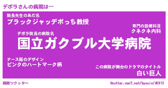 | ヒーロー風カッコイイあだ名 | 『スーパーデボラ』『ウルトラデボラマン』 |