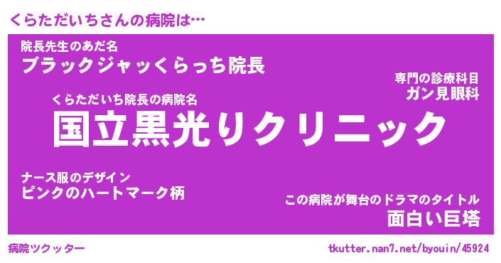 | 男性向けラノベタイトル風あだ名 | 『くらただいちの憂鬱』 |