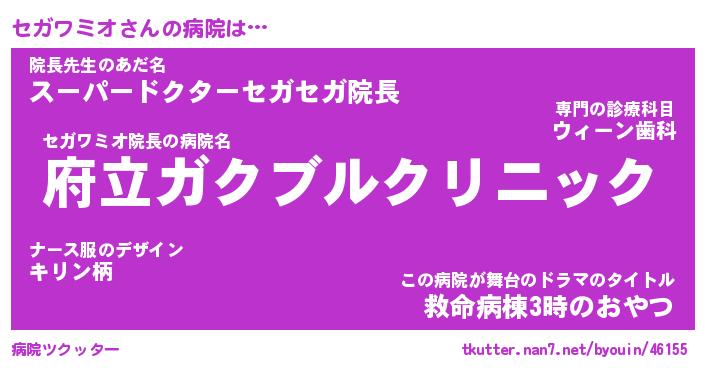 | 2回繰り返すあだ名 | 『セガセガ』『セセガガ』『ぐびぐび』 |