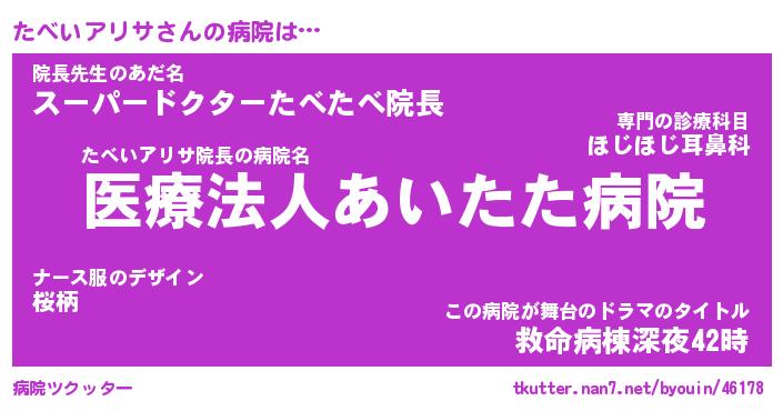 | 肩書あだ名 | 『たべいアリサ御曹司』 |