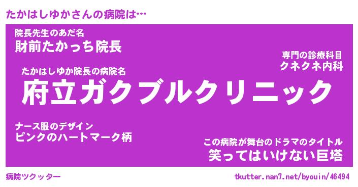 | 肩書あだ名 | 『たかはしゆか店長』『たかはしゆか担任』 |