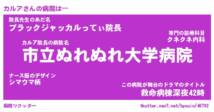 | 2回繰り返すあだ名 | 『カルカル』『カカルル』『にたにた』 |