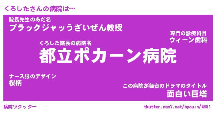 | ヒーロー風カッコイイあだ名 | 『スーパークロシタ』『暗黒騎士クロ』 |