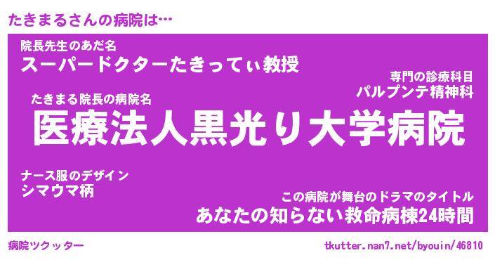 | ファンタジー風あだ名 | 『タキフェル』『エターナルタキマルー』 |