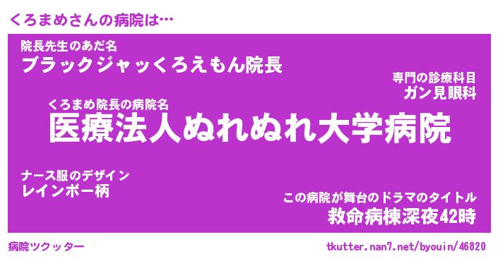 | 2回繰り返すあだ名 | 『くろくろ』『くくろろ』『ぬるぬる』 |