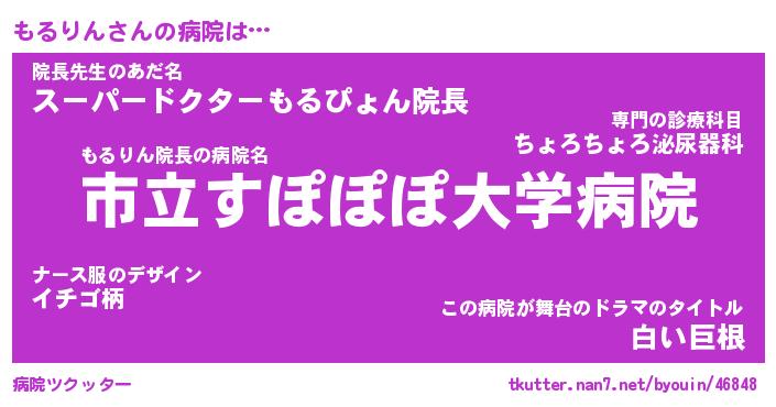 | 男性向けラノベタイトル風あだ名 | 『もるりんの憂鬱』 |