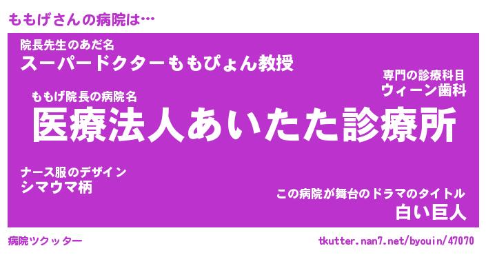 | ヒーロー風カッコイイあだ名 | 『スーパーモモゲ』『ウルトラももげマン』 |