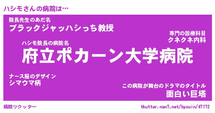 | ポケモン風あだ名 | 『ハシチュウ』『ハシモダネ』 |