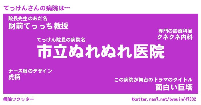 | 意味不明あだ名 | 『ペロリンてっけん』『永久保存てっけん』 |