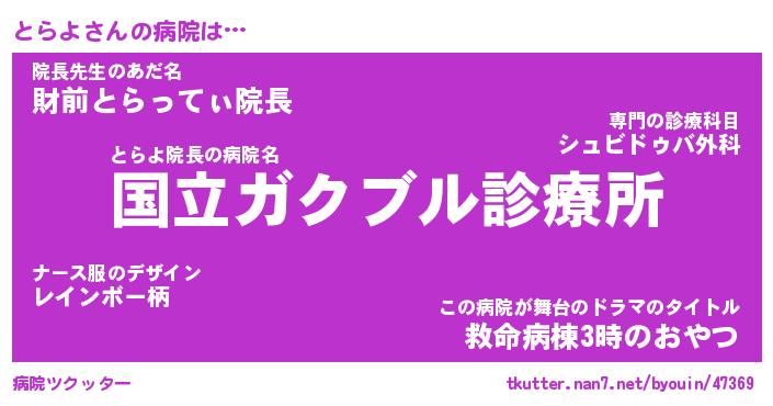 | 2回繰り返すあだ名 | 『とらとら』『ととらら』『いらいら』 |