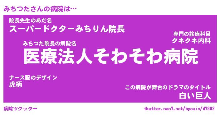| 意味不明あだ名 | 『ペロリンみちつた』『永久保存みちつた』 |
