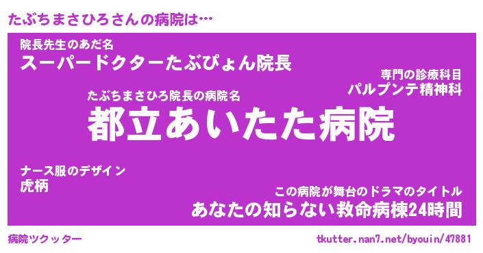 | 恥ずかしいあだ名 | 『プリティーたぶちまさひろ』『たぶちん』 |