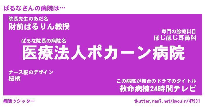 | ヒーロー風カッコイイあだ名 | 『スーパーパルナ』『ウルトラぱるなマン』 |