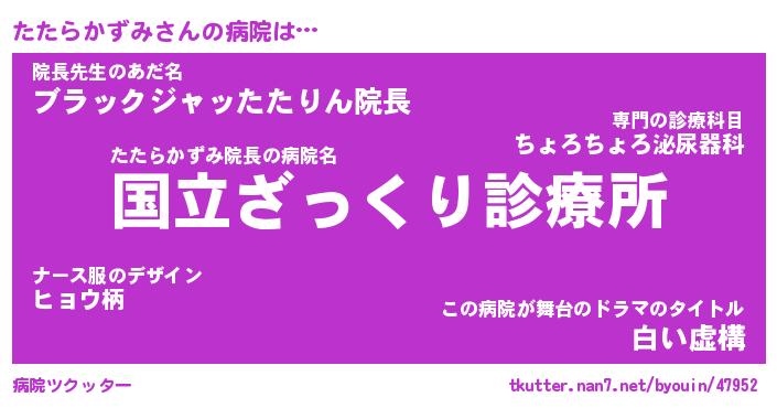 | 胡散臭い通販商品みたいなあだ名 | 『必ず成功する霊験あらたかなお札…その名も「たたらかずみ」』 |