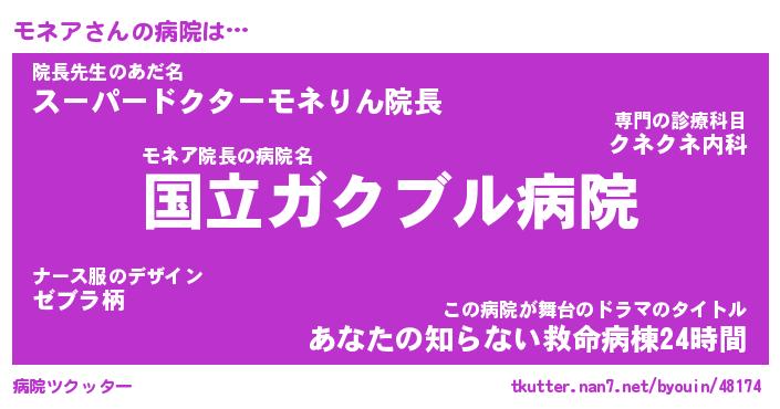 | ヘコむあだ名 | 『モネにゅー』『つくし』『モネっぺ』 |