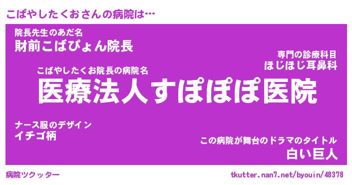| ヘコむあだ名 | 『こばもー』『酢こんぶ』『こばっ子』 |