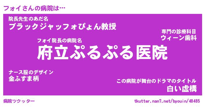 | ヘコむあだ名 | 『フォにゅー』『なまこ酢』 |