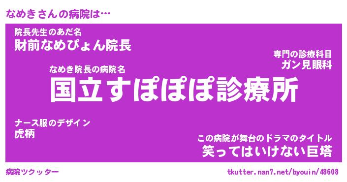 | ヘコむあだ名 | 『なめもー』『酢こんぶ』『なめっ子』 |