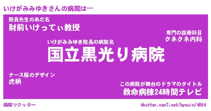 | 恥ずかしいあだ名 | 『プリティーいけがみみゆき』『いけちん』 |