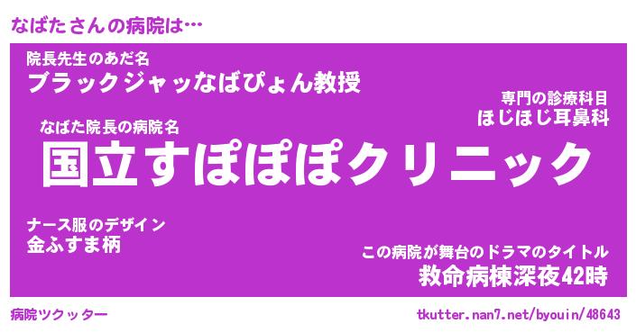 | ヒーロー風カッコイイあだ名 | 『スーパーナバタ』『ウルトラなばたマン』 |
