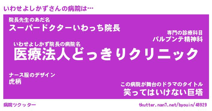 | 肩書あだ名 | 『いわせよしかず御曹司』 |