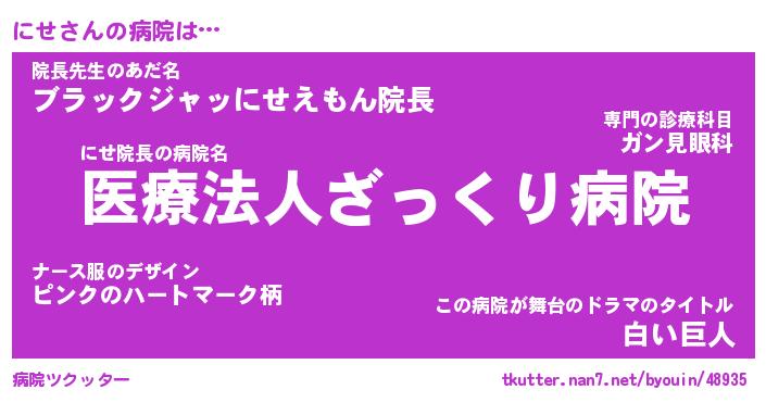 | 2回繰り返すあだ名 | 『にせにせ』『ににせせ』『ねばねば』 |