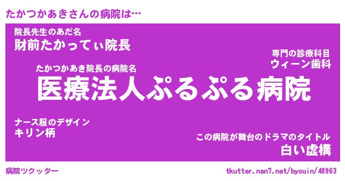 | 肩書あだ名 | 『たかつかあき店長』『たかつかあき班長』 |