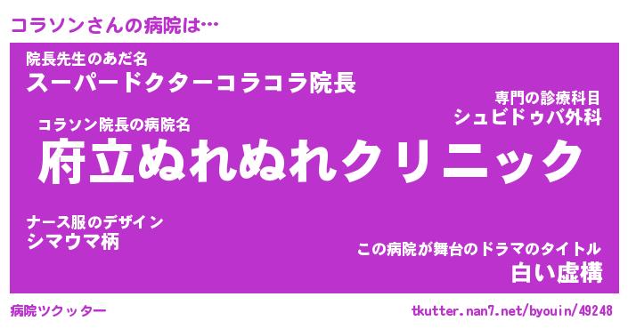 | 男性向けラノベタイトル風あだ名 | 『コラソンの憂鬱』 |