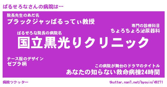 | 男性向けラノベタイトル風あだ名 | 『ばるせろなの憂鬱』 |