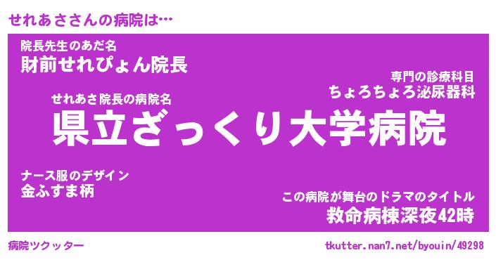| 意味不明あだ名 | 『ペロリンせれあさ』『永久保存せれあさ』 |