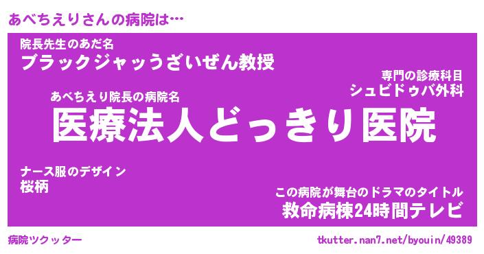 | 肩書あだ名 | 『あべちえり御曹司』『あべちえり大統領』 |