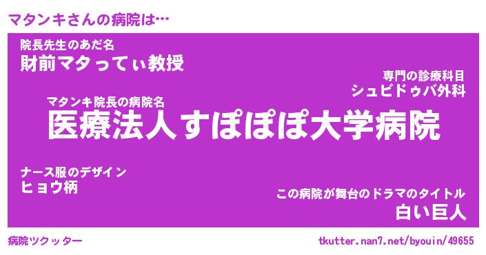 | 意味不明あだ名 | 『ペロリンマタンキ』『永久保存マタンキ』 |