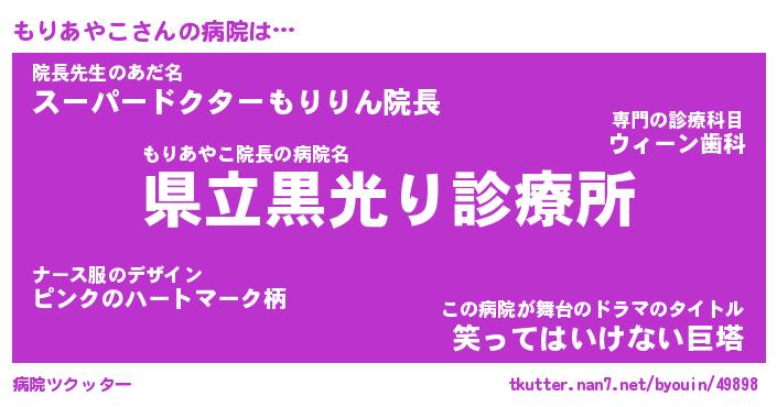 | ヘコむあだ名 | 『もりにー』『牛乳』『もりぷりん』 |
