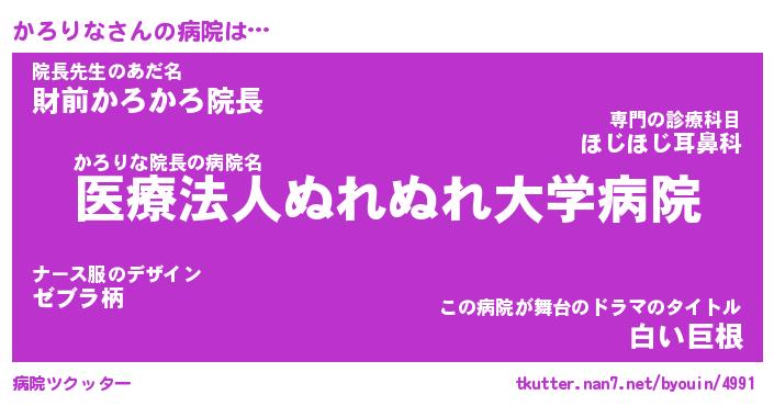 | 意味不明あだ名 | 『ペロリンかろりな』『永久保存かろりな』 |