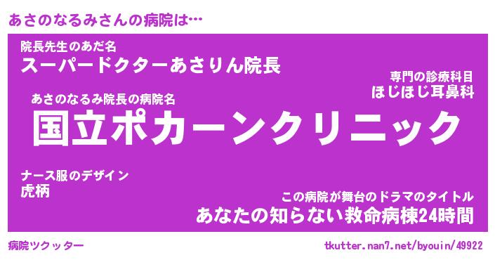 | 男性向けラノベタイトル風あだ名 | 『あさのなるみの憂鬱』 |
